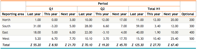 dbr.hsum - Calculates the horizontal sum in a cross-tabulation report